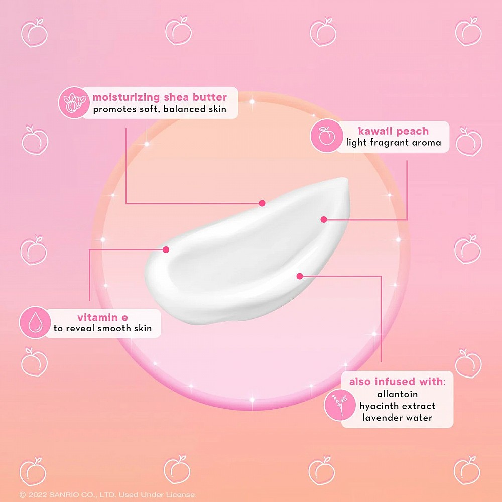 Made with Shea Butter and Vitamin E to nourish even the driest of skin. Notes of Kawaii Peach add a delicious touch.