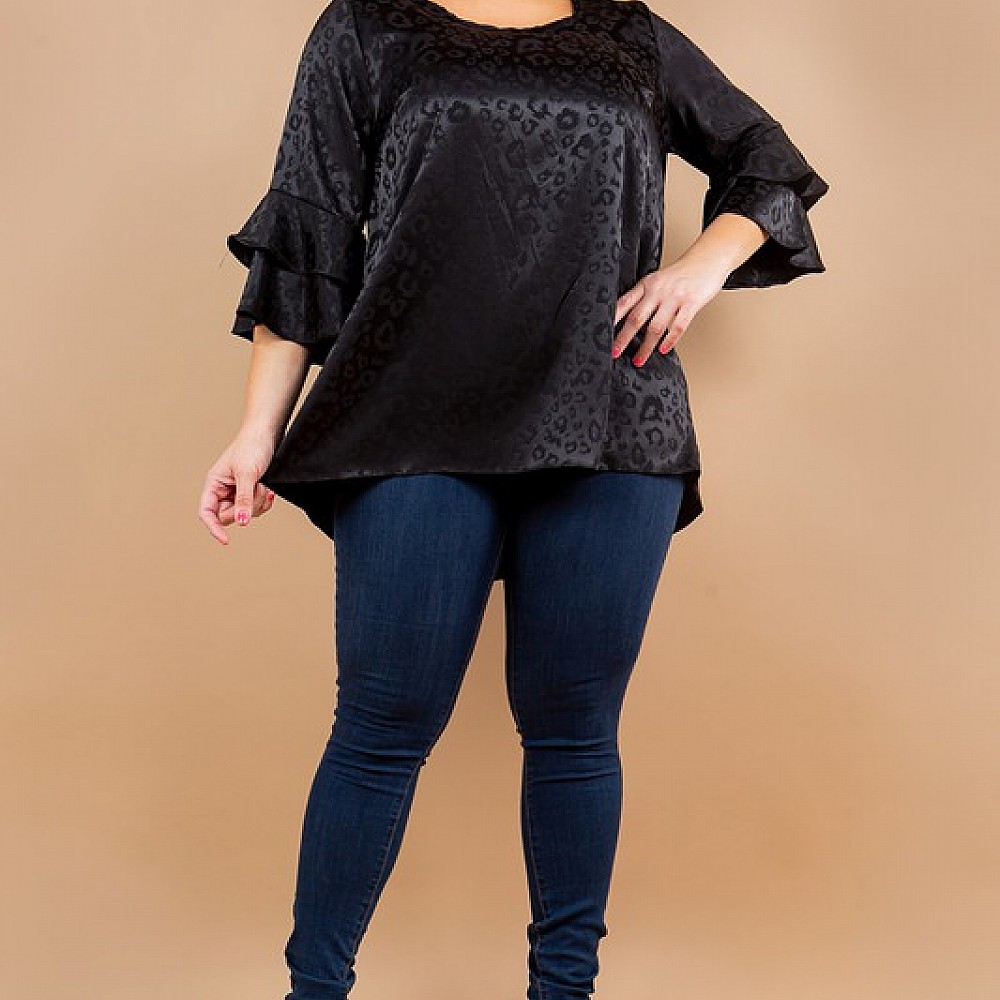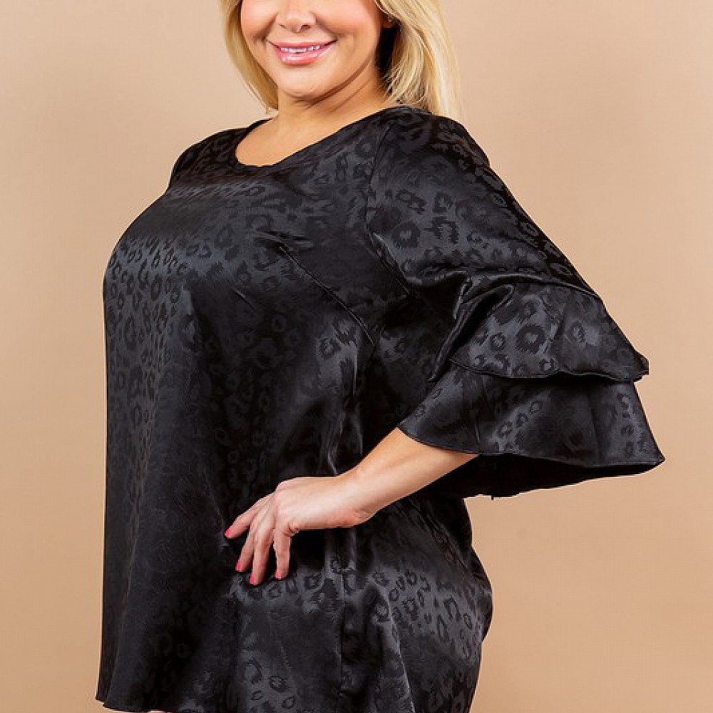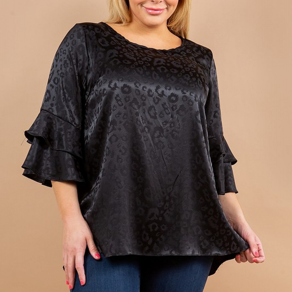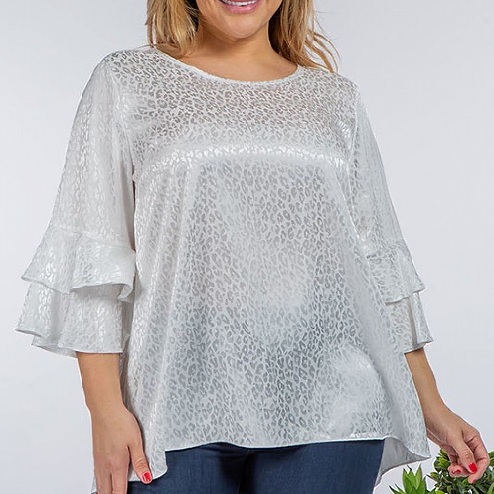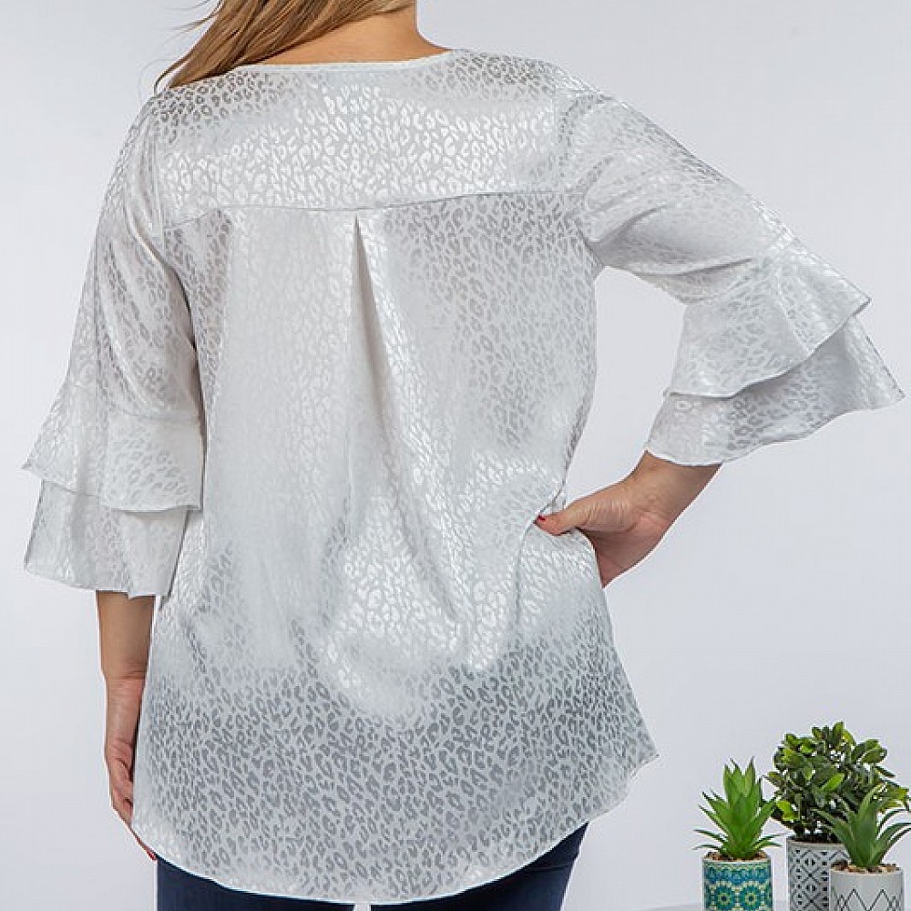 Elbow Length Double Ruffle Sleeve Top