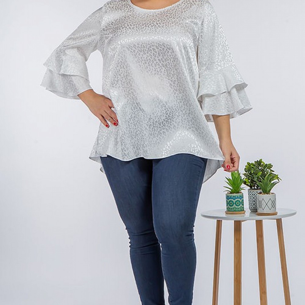 Elbow length Double Ruffle Sleeve Top.