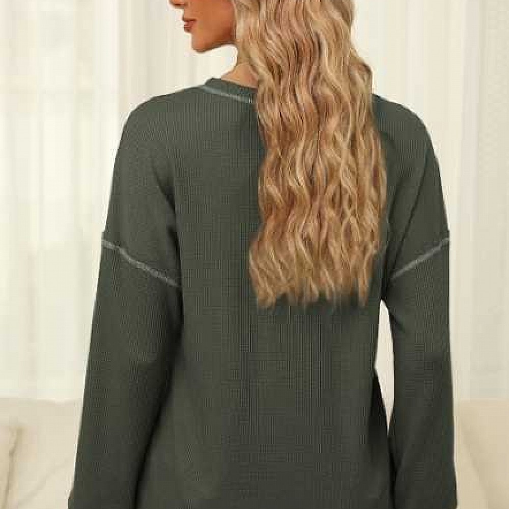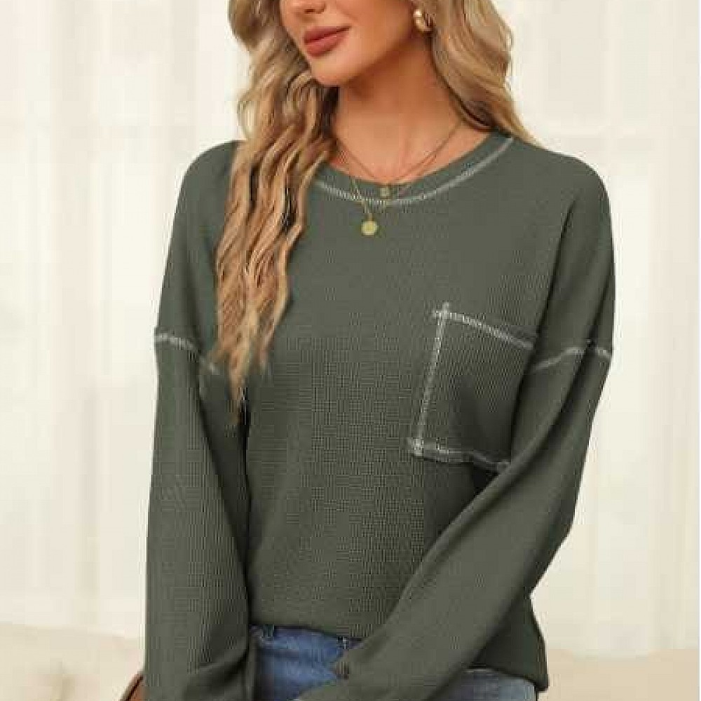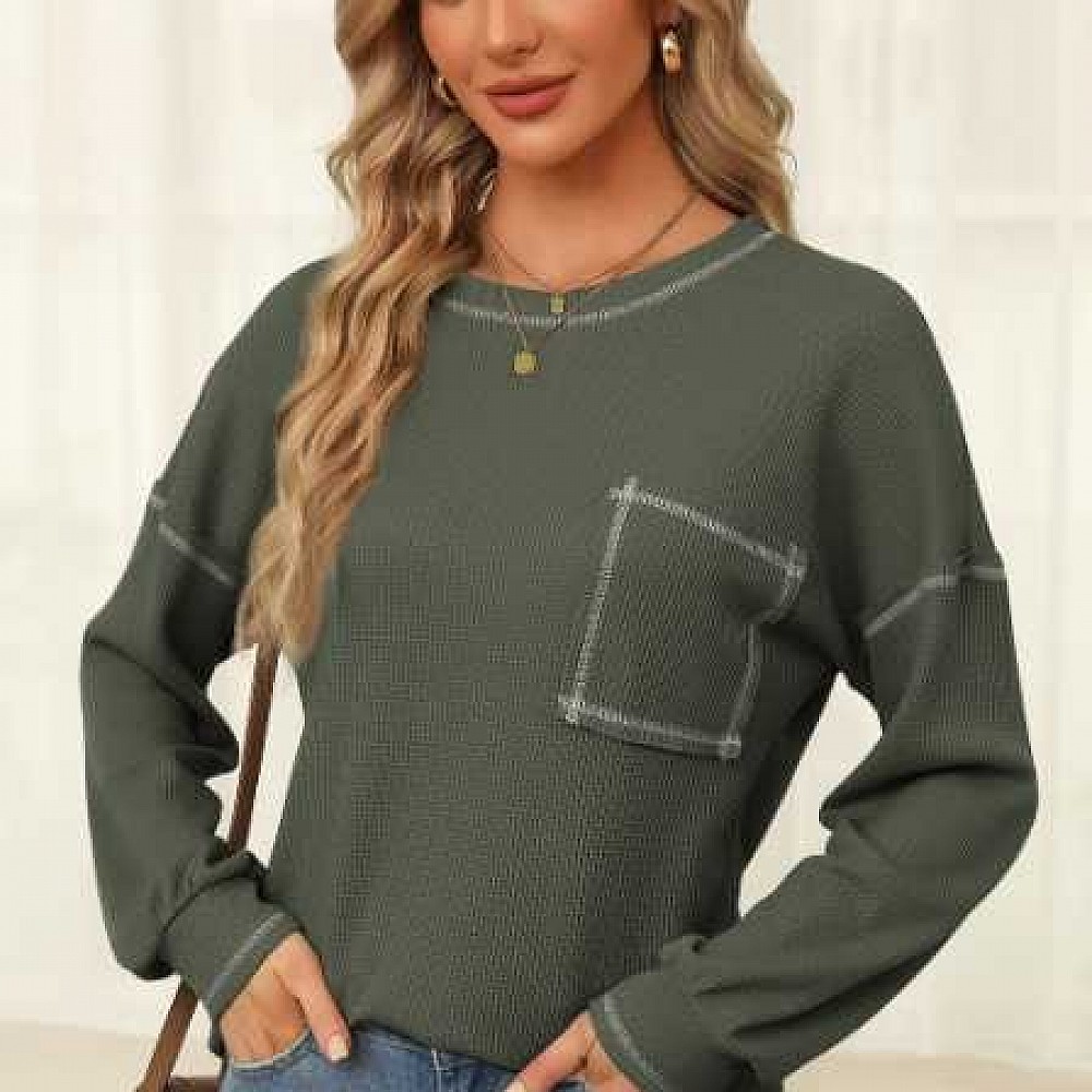 This chic, long-sleeve top boasts a relaxed fit and a unique textured waffle pattern.