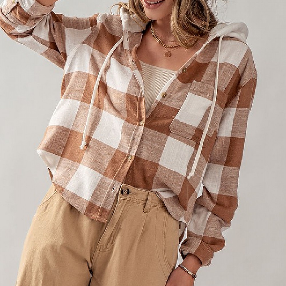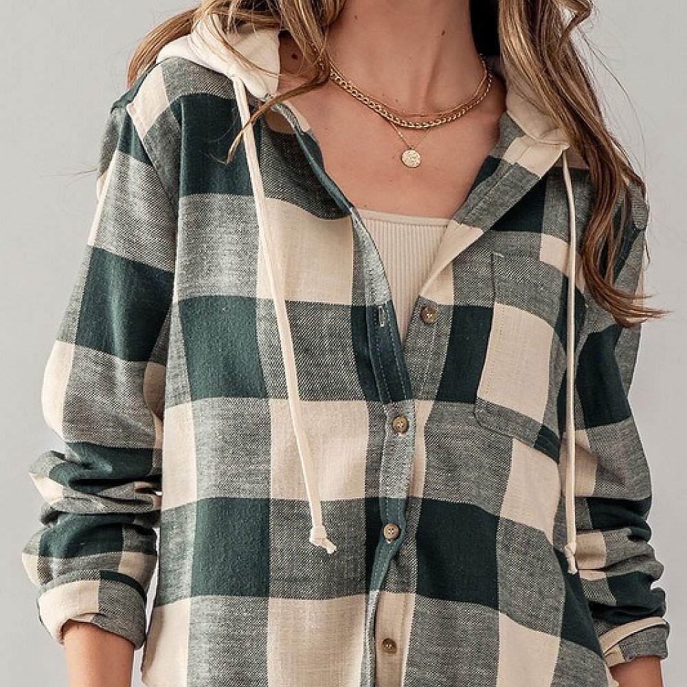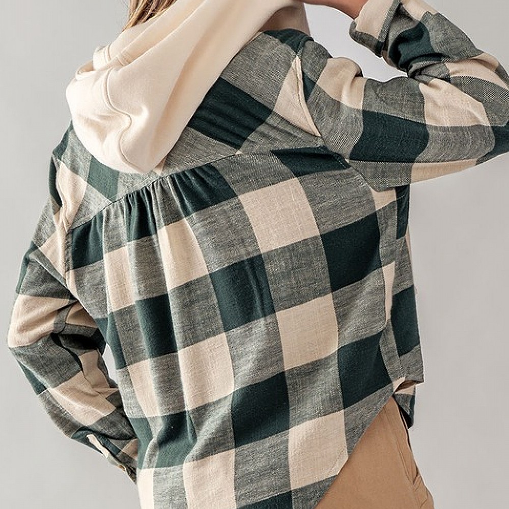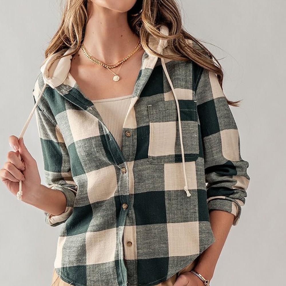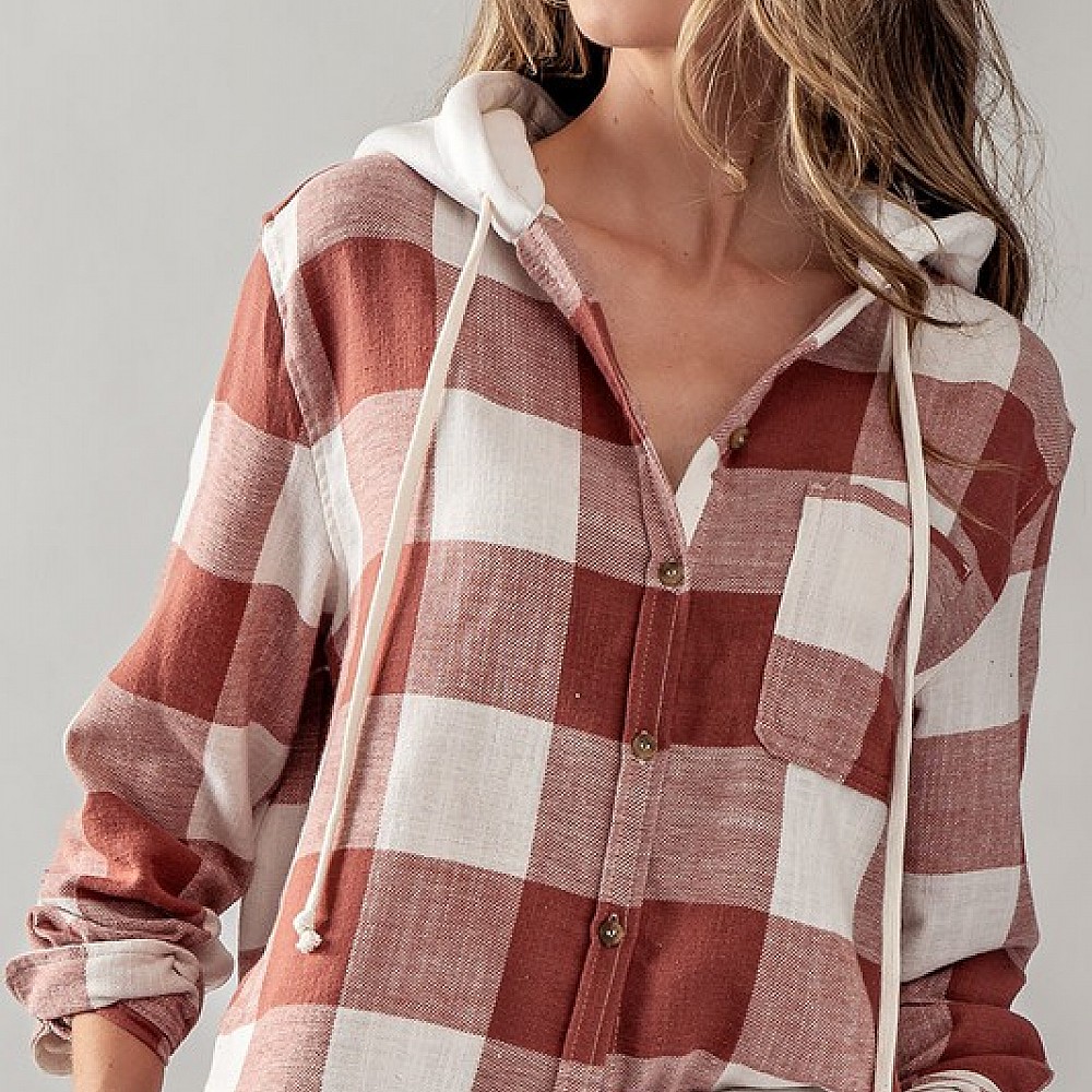 Buffalo Plaid Button Down Hooded Top