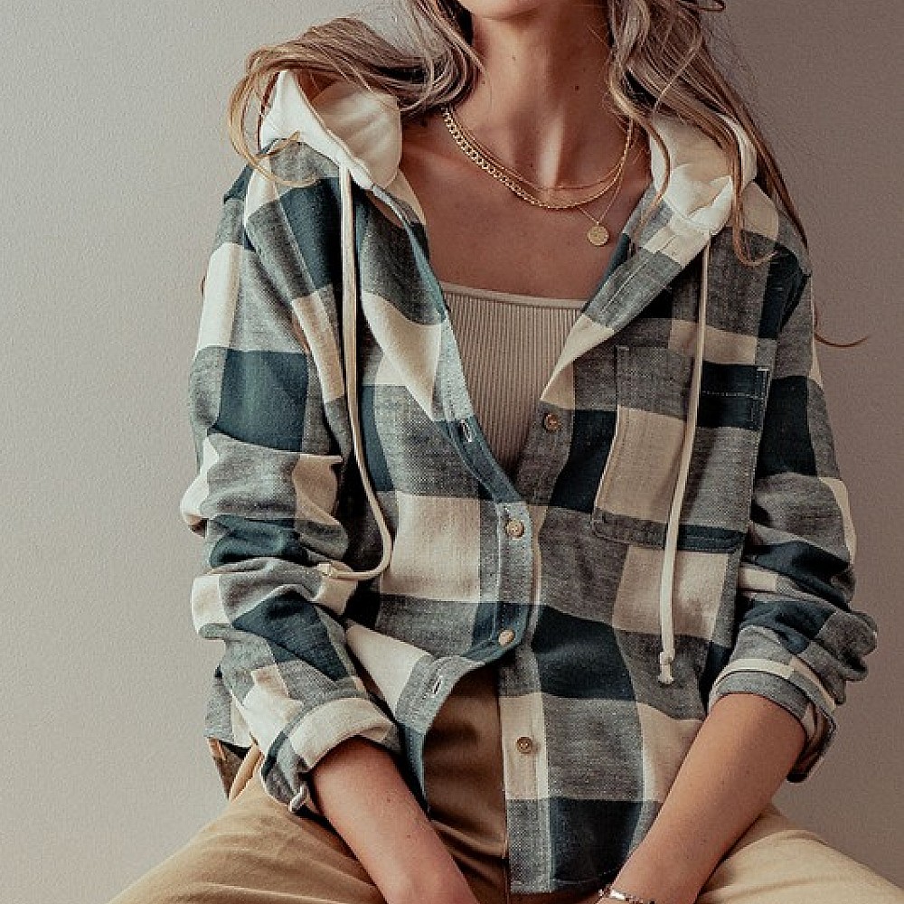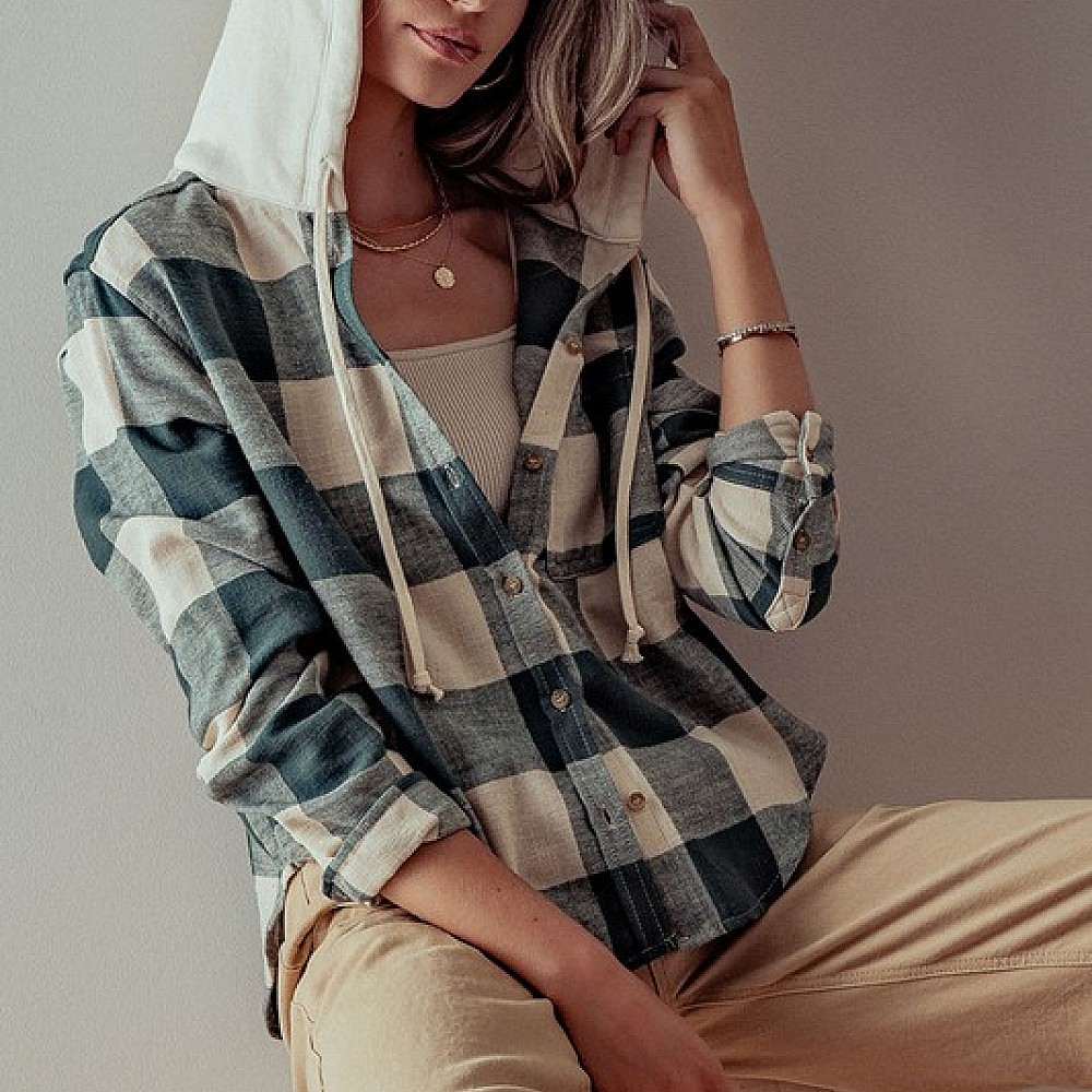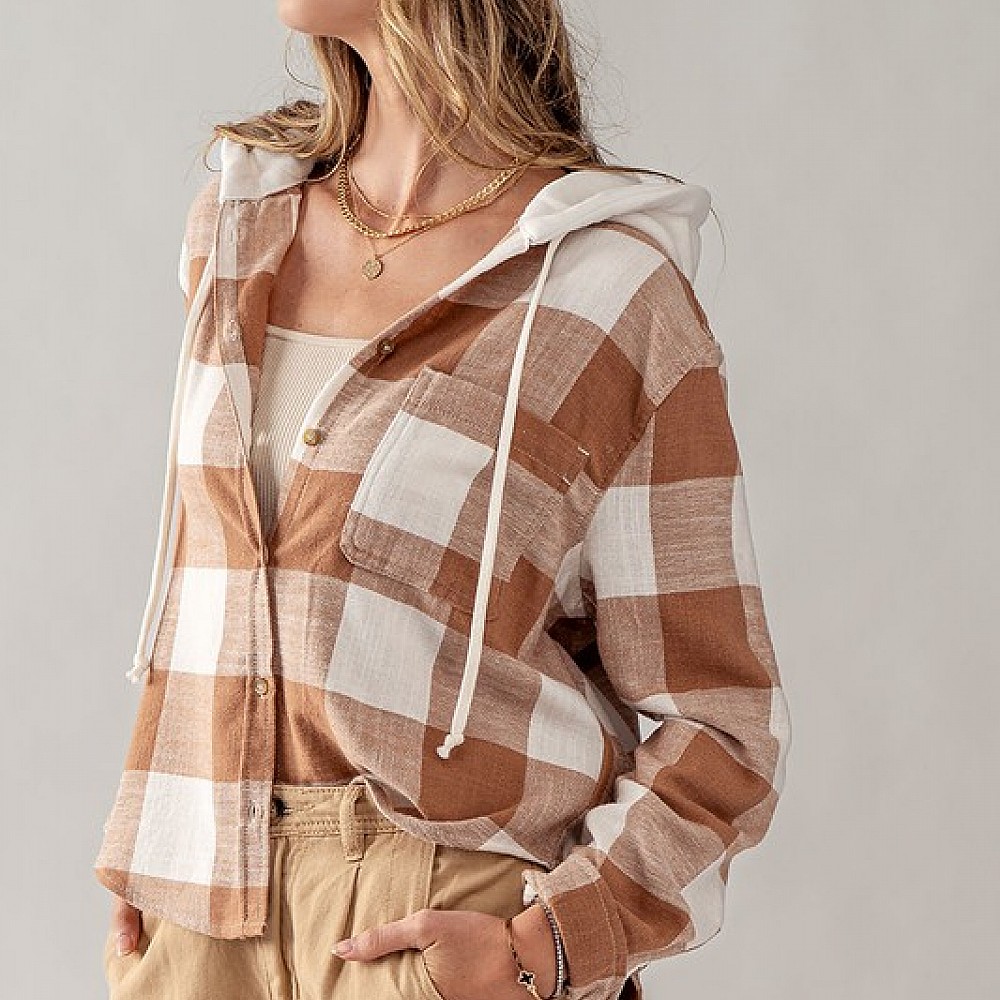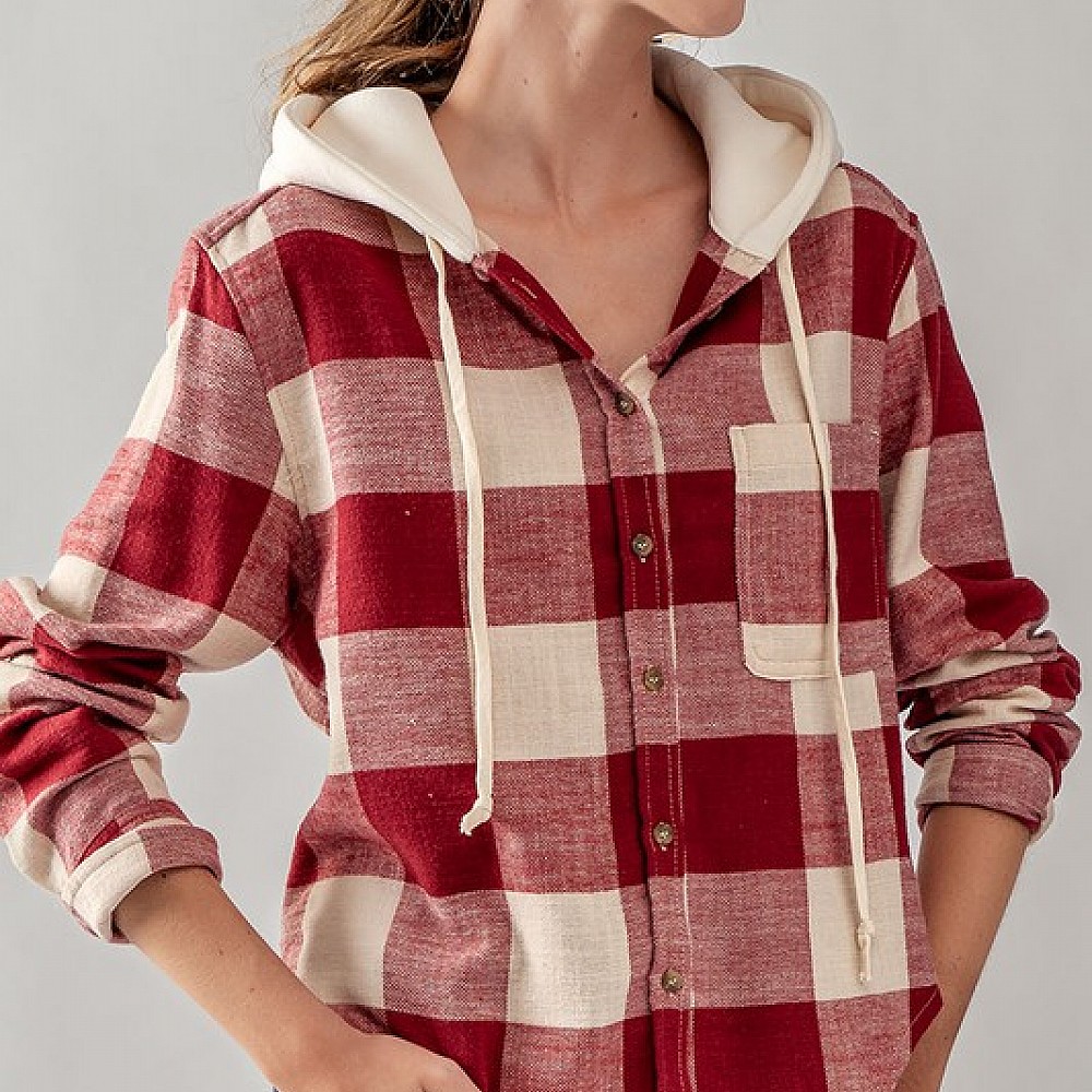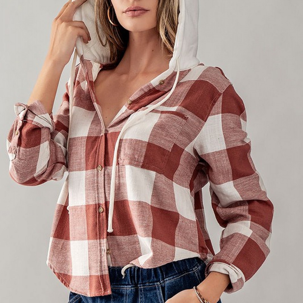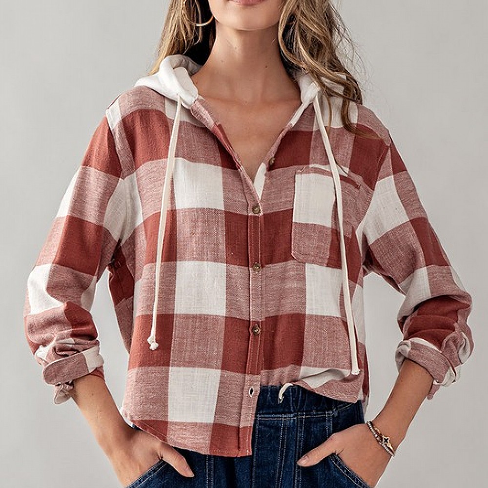 Buffalo Plaid Button Down Hooded Top