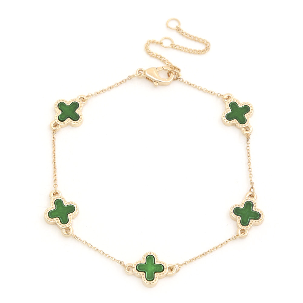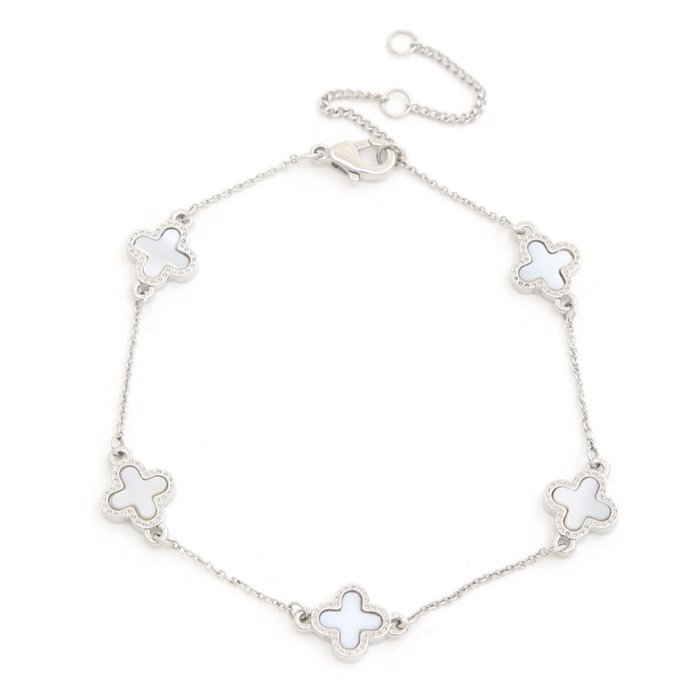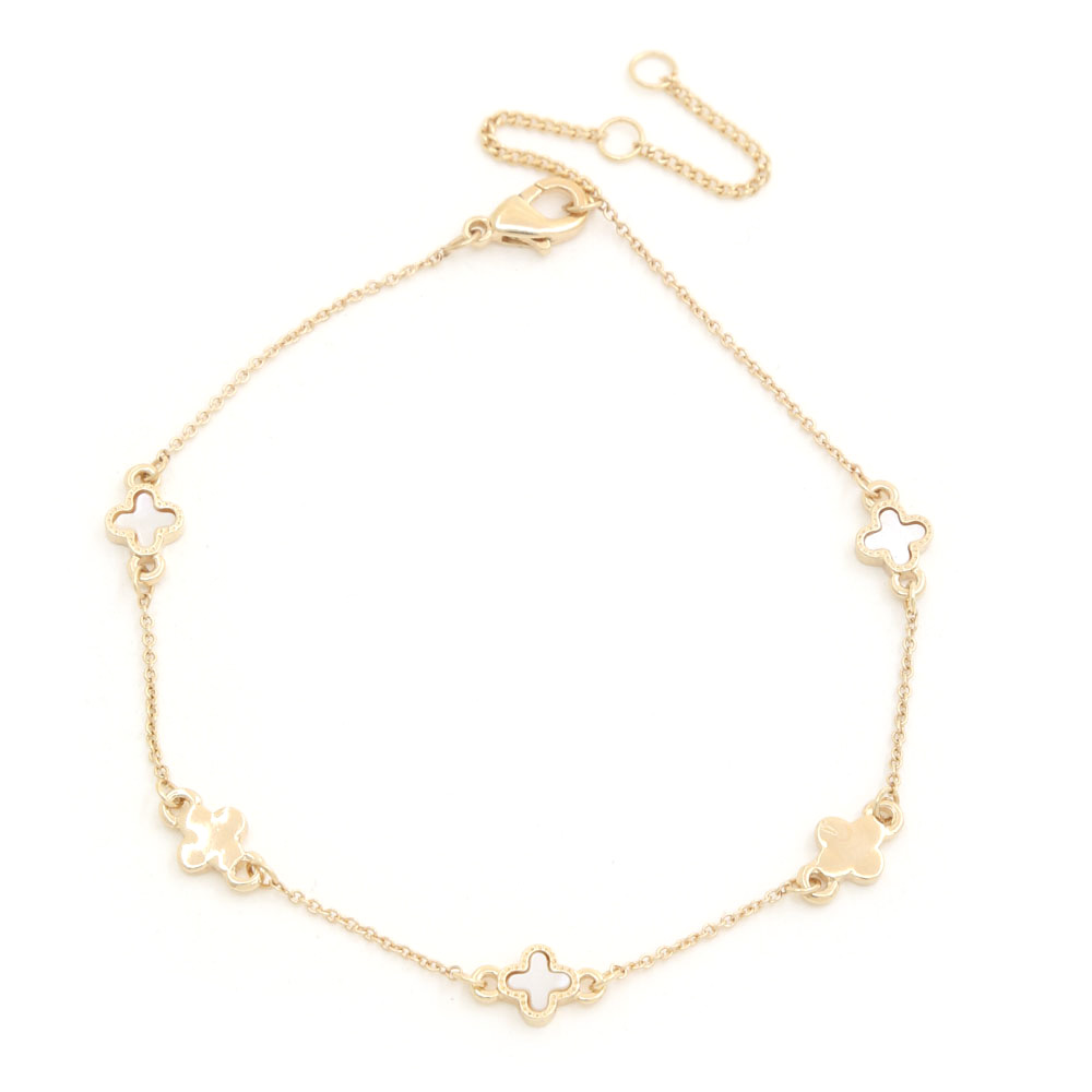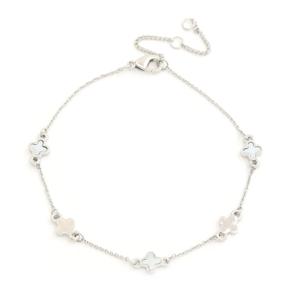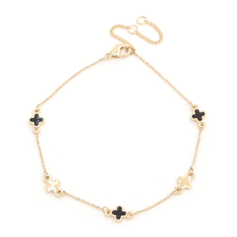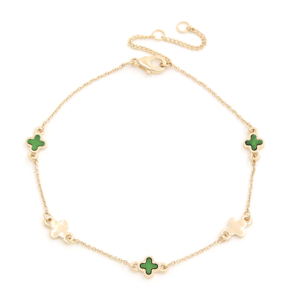 Clover design bracelet with adjustable rings to fit your wrist or ankle..