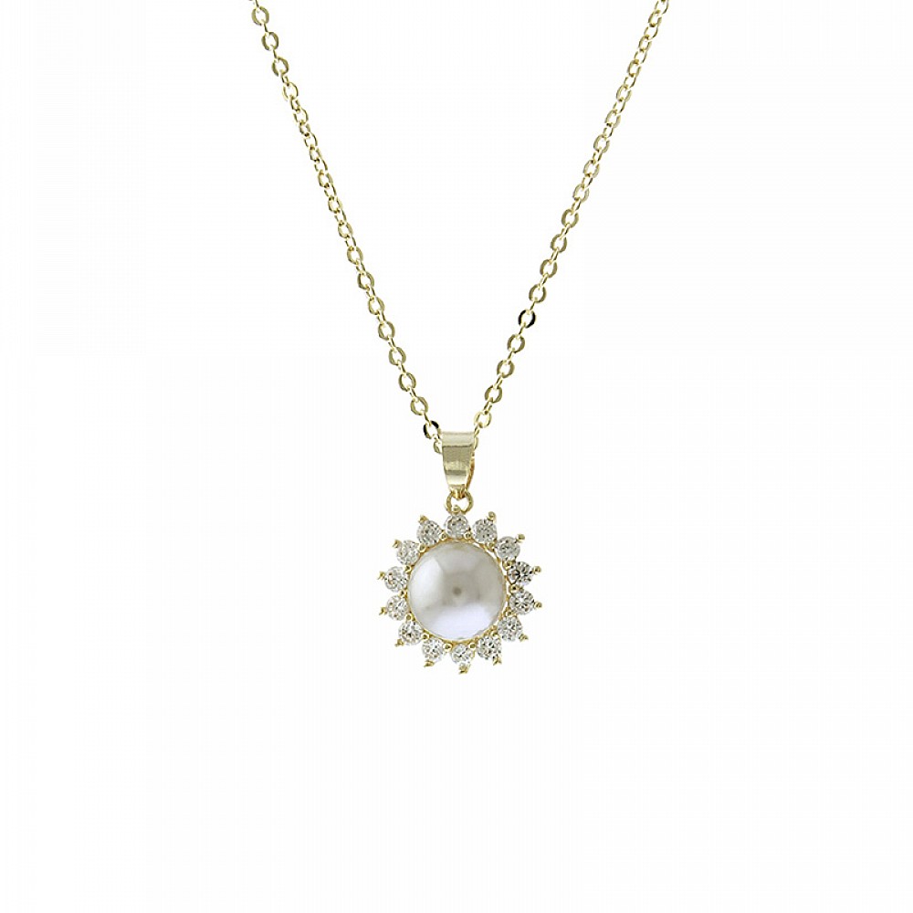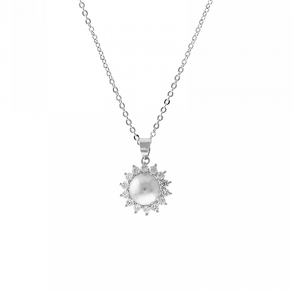 CUBIC ZIRCONIA FLOWER PENDANT RHODIUM PLATED NECKLACE..