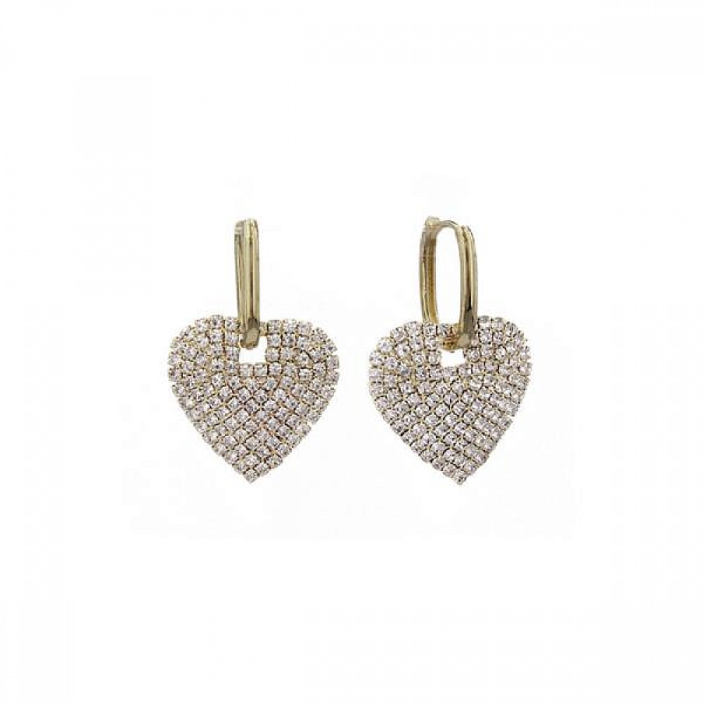 Rhinestone Filled Pave Heart Earrings Oval Hoop with Dangling Heart Size: 0.98X1.06 inches ..