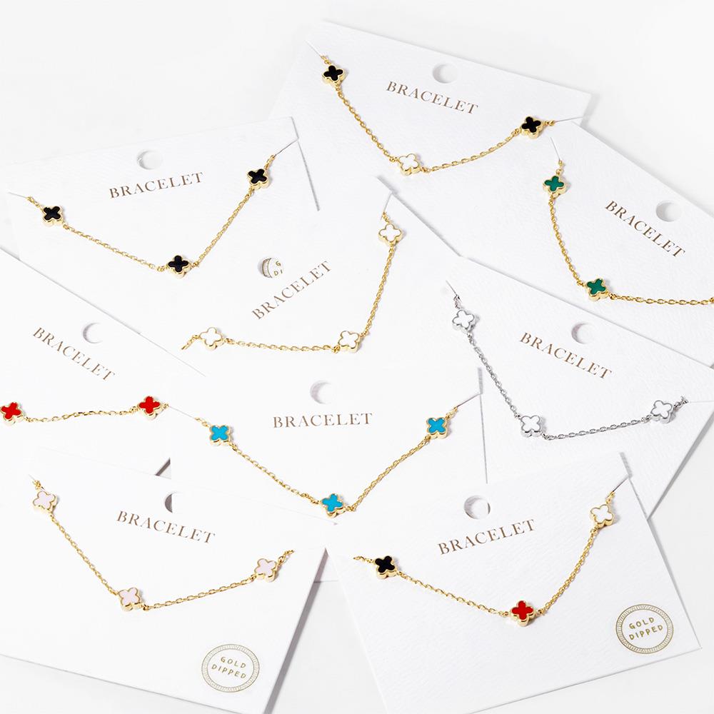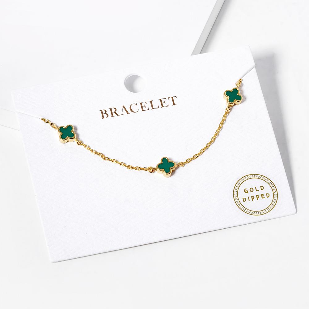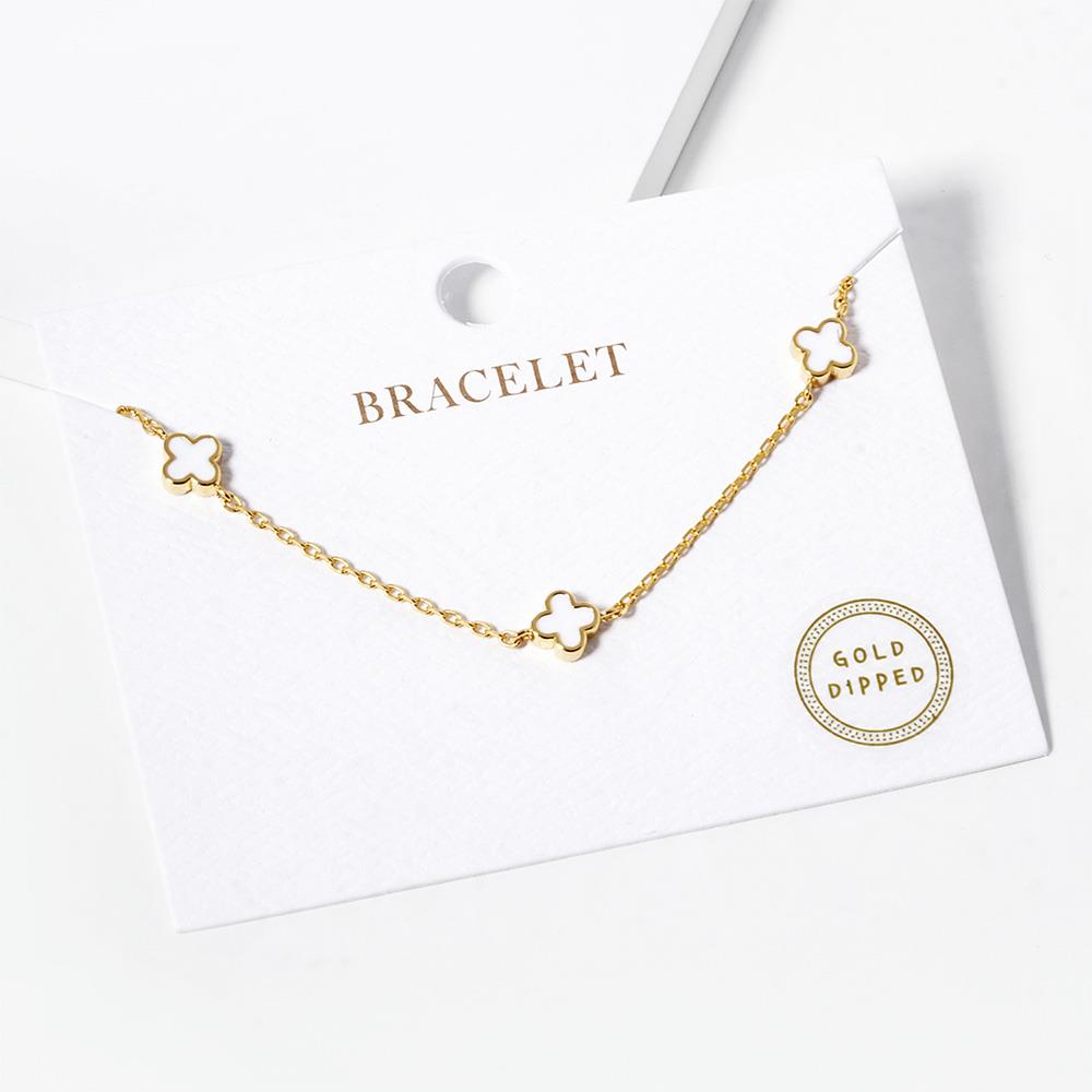 18K Gold Dipped Dainty Clover Charm Bracelet