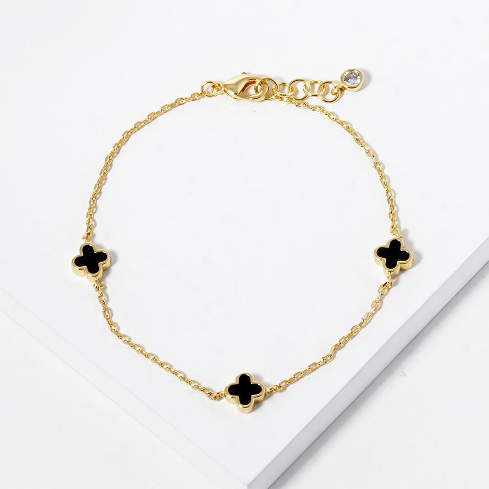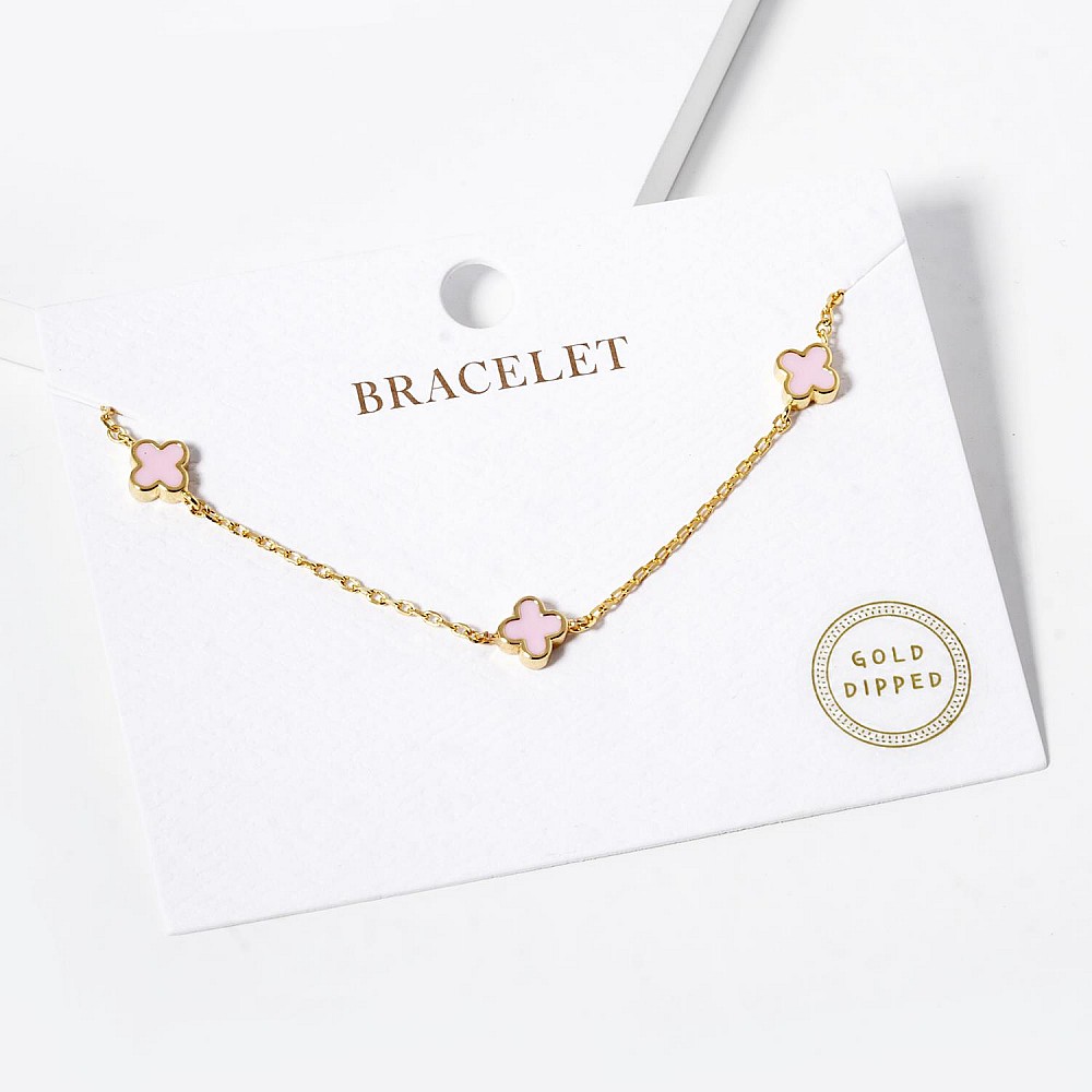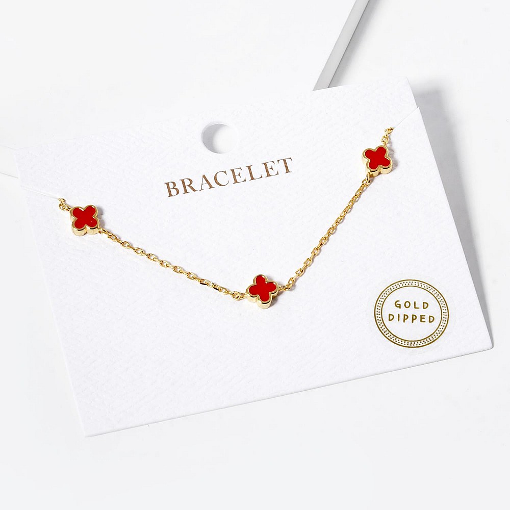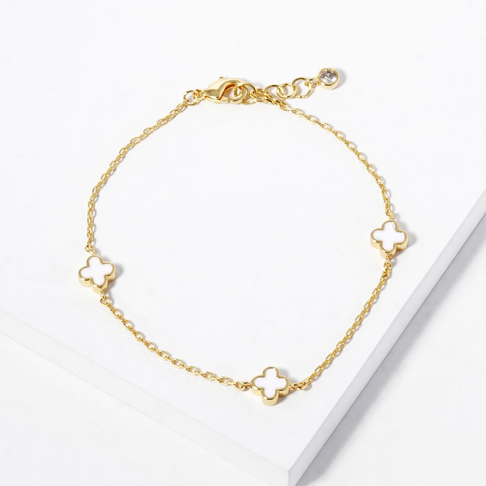 18K Gold Dipped Dainty Clover Charm Bracelet
