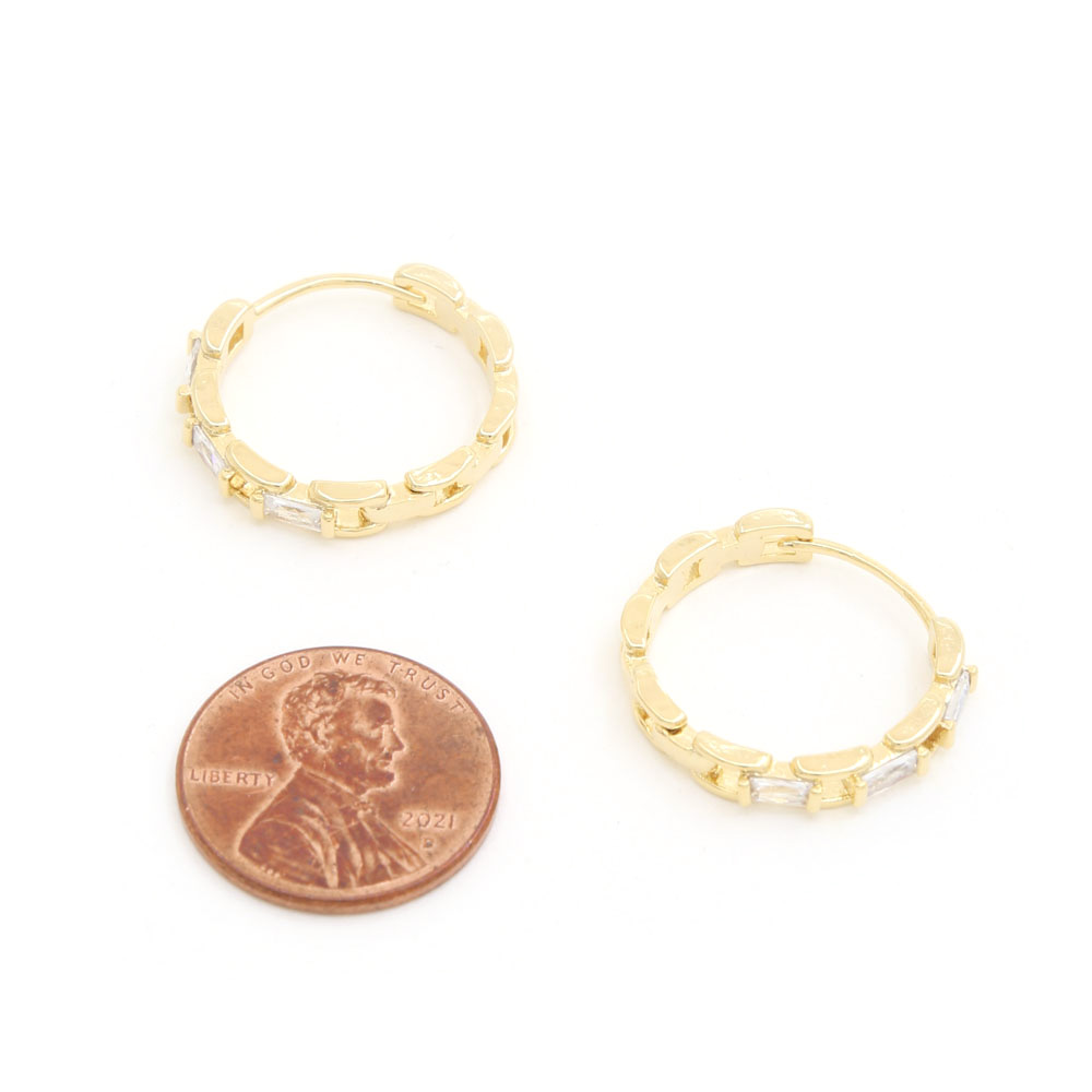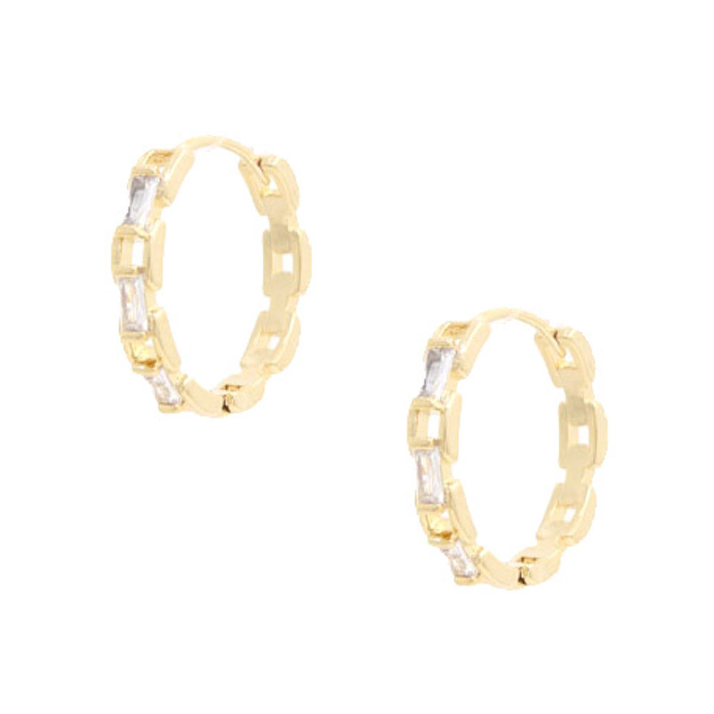 18K Gold Dipped Square Link Cubic Zirconia Earrings