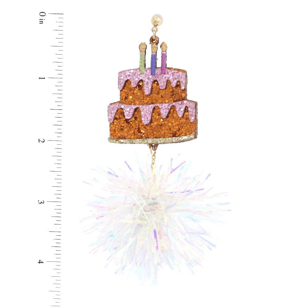 BIRTHDAY CAKE TINSEL POM POM EARRING