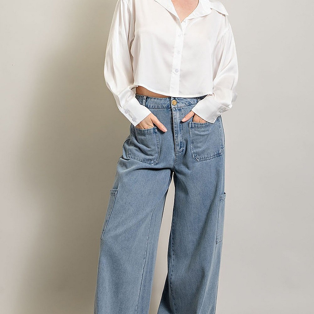 One of our best seller pants is now in denim! These pants have front center slit at the hemline. Fr..