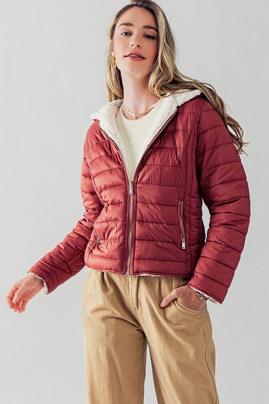 Perfect warmth and perfect thickness on this reversible puff jacket! Zip Front Hooded Reversible ..
